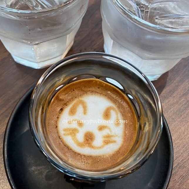 The cool cat on the machiato lasted longer as there was less foam to begin with. It was a cup of strong, concentrated coffee, softened by the splash of milk. Overall we found Huggs Coffee worthy of its name. It is indeed a friendly place. We were even offered two glasses of cold water without asking!