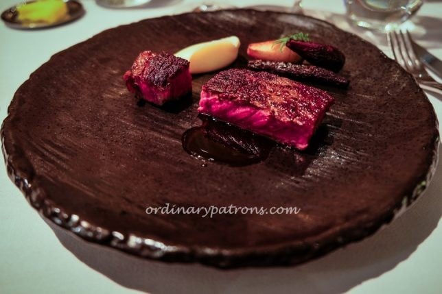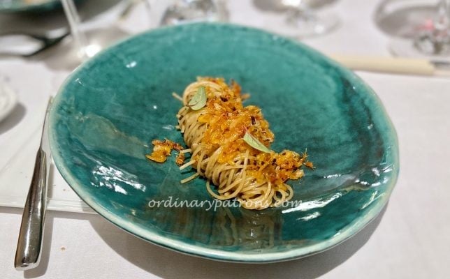 Iggy’s Singapore’s signature dish – capellini prepared with Sakura ebi, lobster oil, kombu, sorrel looked like a humble noodle dish but was a highlight of our meal. The tiny shrimps had an expectedly powerful seafood taste to lift the entire dish.
