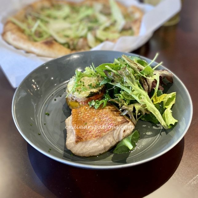We only ordered two items that day – Meatball and Pesto Pizza and Snapper ($22 each). It was more than adequate for two persons as the pizza was a large one. We had expected the meatballs to be strong and flavourful. But they were rather mild in taste. Some thin slices of broccoli added texture, but we thought that it was overall rather bland. We asked for some chilli flakes and that improved the taste considerably. The best part of the Bistro G pizza was the crust. The thick parts were chewy and had a pleasant doughy taste.