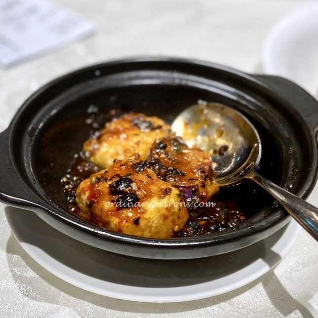 Our favourite dishes of the day at Empire restaurant were two less common dim sum dishes – pan-fried prawn cake with string bean ($16, picture above) and stuffed minced shrimp in 3 types of vegetables ($7.80, picture below). The latter was a mini claypot containing eggplant, tofu and bitter gourd stuffed with prawn past. It sounds like humble yong tau fu, but it was the best item of the day as the sauce and the texture of the items were brilliantly executed.