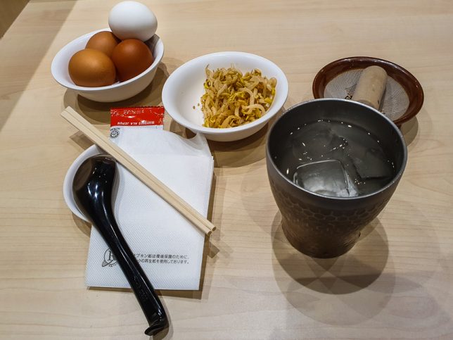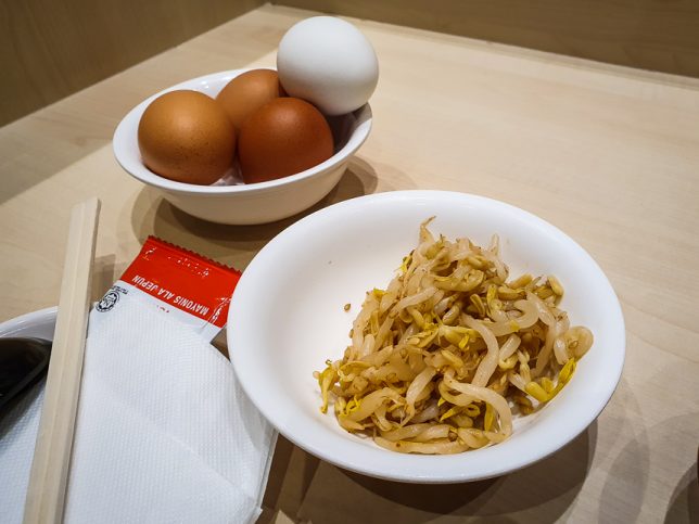 The free hard boiled eggs, bean srpunts and sesame seeds were then served. The service was efficient and the staff were much friendlier than those we encountered when we visited Tonkotsu King in its early days.