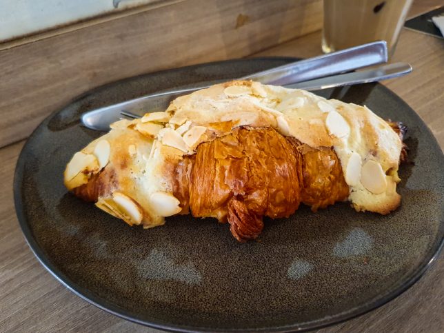 We tried a small piece of of cake and the almond croissant. Both were very nice. The croissant was warmed up before it was served.