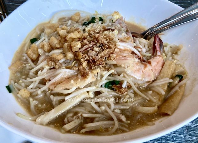 One of the best dishes served at the Suntec City Guild House is Hokkien mee. It is probably not the most healthy dish as it was served with an abundance of pork lard and prawns. Thinking that the high tea platter was suitable as a quasi-dessert and coffee item, we had ordered the Hokkien mee. It was very good as usual, but that led to us doggy-bagging a big part of the high tea items.