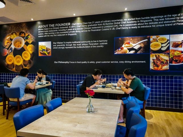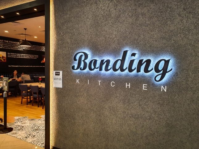 Chef Danny Chew, a graduate of At-Sunrice Global Chef Academy, had a successful private dining service in Malaysia prior to opening Bonding Kitchen Modern Peranakan Restaurant at Gateway Orchard in late 2020. The restaurant has a simple but pleasant interior decorations. It has a main dining area and a small section nearer the kitchen. The two parts are connected by a narrow corridor.