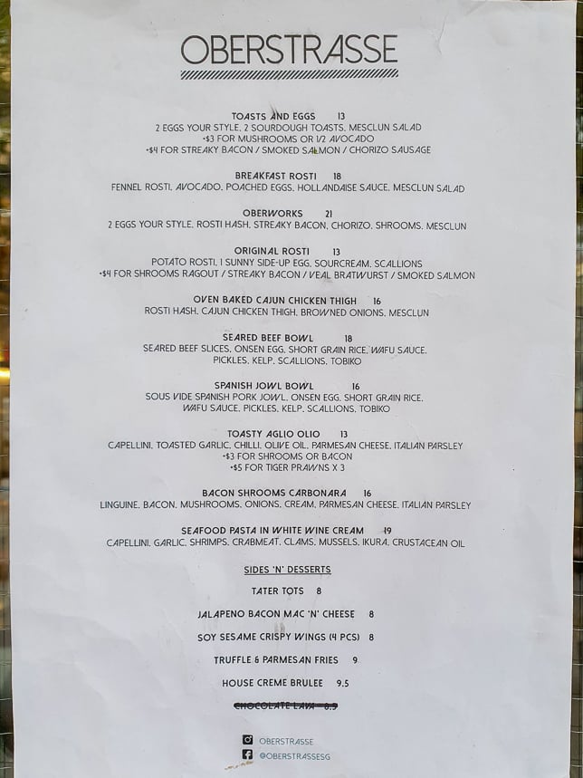 We liked the coffee at Oberstrasse Cafe. The staff was cheerful and friendly. The prices are reasonable, especially when you consider that no GST or service charge is added to the bill. On the whole, we think that Oberstrasse Cafe is a pleasant spot for breakfast, brunch, a simple lunch or afternoon tea. It can be a very nice place to while away your time if you have to wait for an appointment at the ICA.