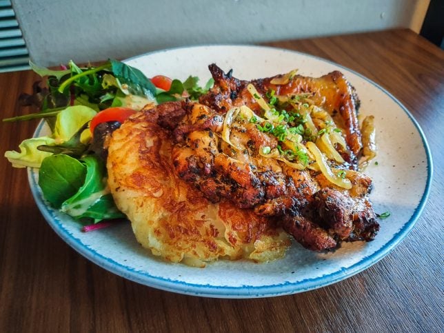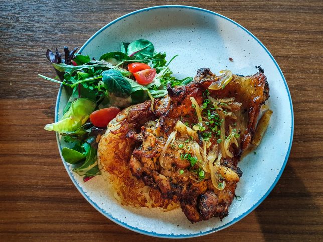 The Oven Baked Cajun Chicken Thigh was served with rosti and a generous portion of salad. The chicken was well seasoned. It was tender and juicy and had smokey crispy skin. The rosti was nice. It was crispy brown on the outside and had a buttery soft, melting interior. The dish was a substantial meal that was enjoyable.