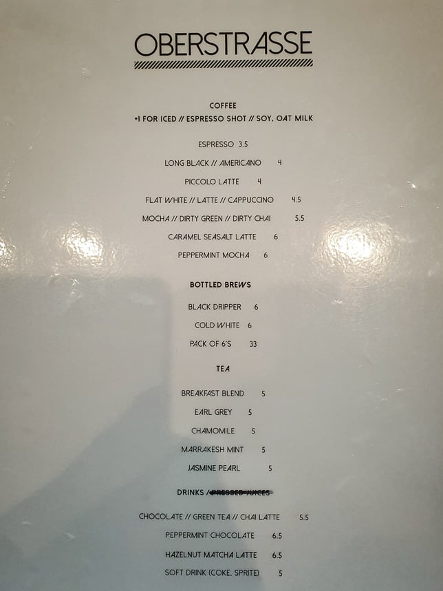 Oberstrasse is home of specialty coffee roasters – OBX Coffee Roasters. The coffee at the cafe is of good quality and reasonably priced. We have tried the hot Americano, latte and bottled cold brew. They were all very good.