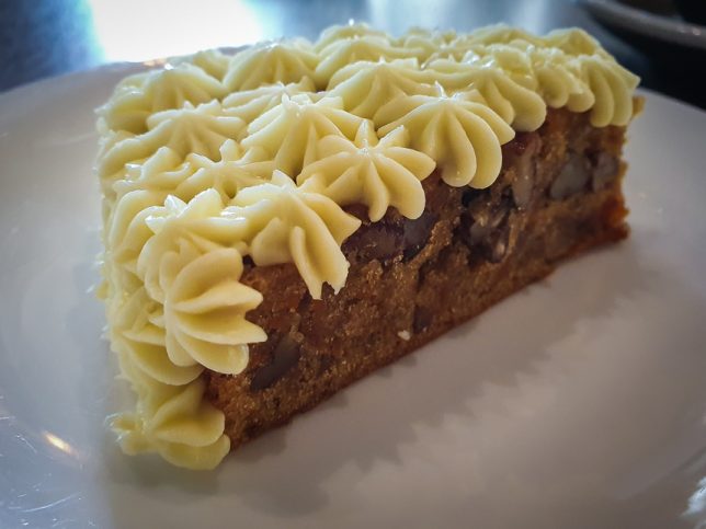 We also had a slice of carrot cake ($6). It was moist and not too sweet. The cream cheese icing was pretty and made the nice carrot cake into an object of desire.