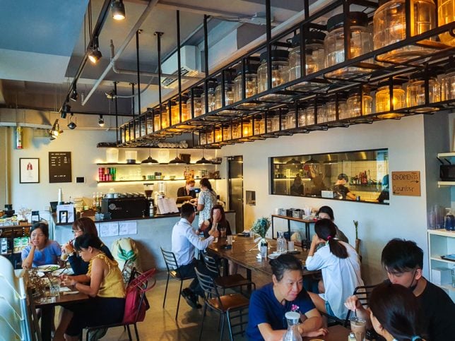 Oberstrasse Cafe is another cafe with the industrial style decor, complete with exposed ceiling and concrete floor. Overhead, there are rows of interesting jar lights. The tables are quite well spaced out and there is a relaxed friendly atmosphere.