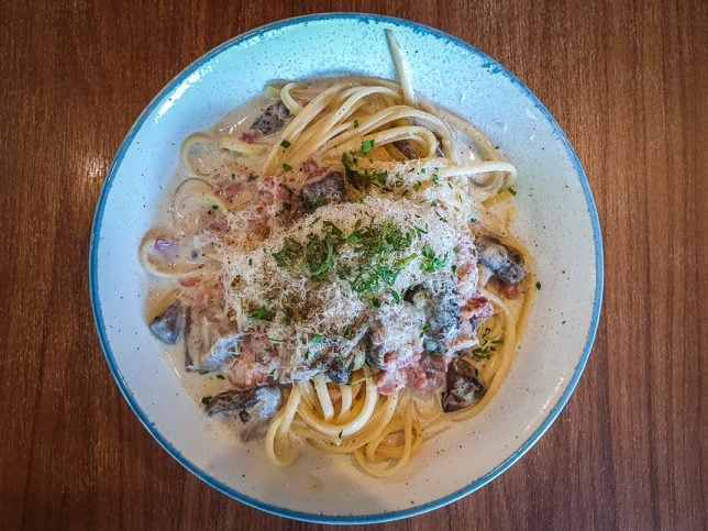 The creamy bacon and mushroom carbonara was saucy and tasty. The pasta had a pleasant springy texture and was smothered with a smooth buttery sauce. The bacon and flavoursome mushroom helped made it a comforting and satisfying pasta dish.