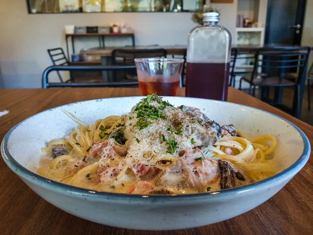 We had the Bacon Shrooms Carbonara ($16) and Oven Baked Cajun Chicken Thigh (($16) for lunch.