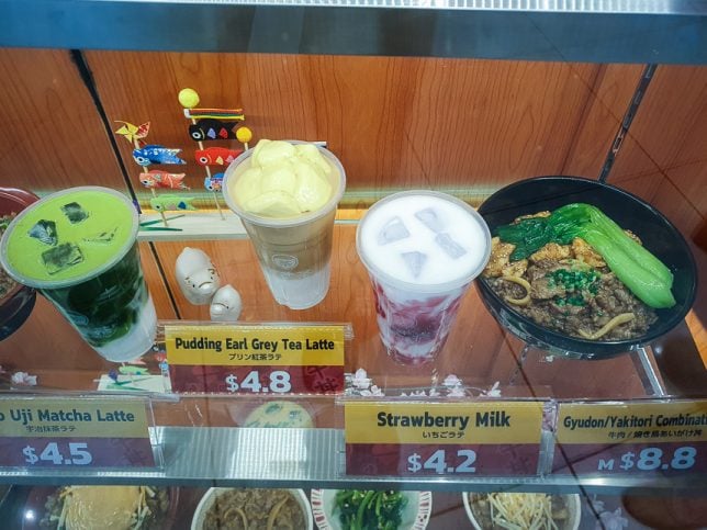 There are on display replica models of food, commonly used in restaurants in Japan, to represent the dishes available in Sukiya in Suntec City.