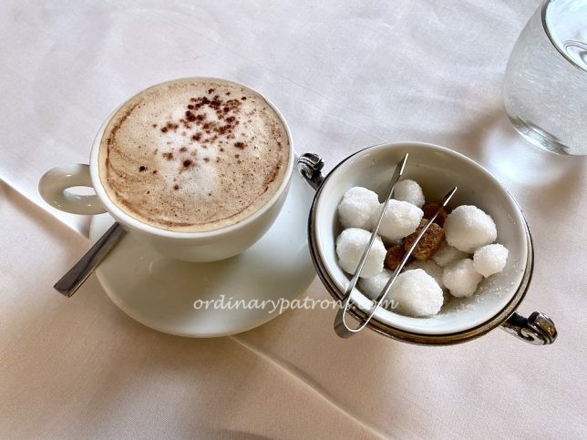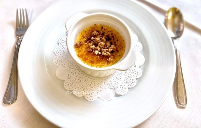 The dessert options did not look very interesting – two choices of dessert or coffee. We decided on the crรจme brรปlรฉe maison and a cappucino.