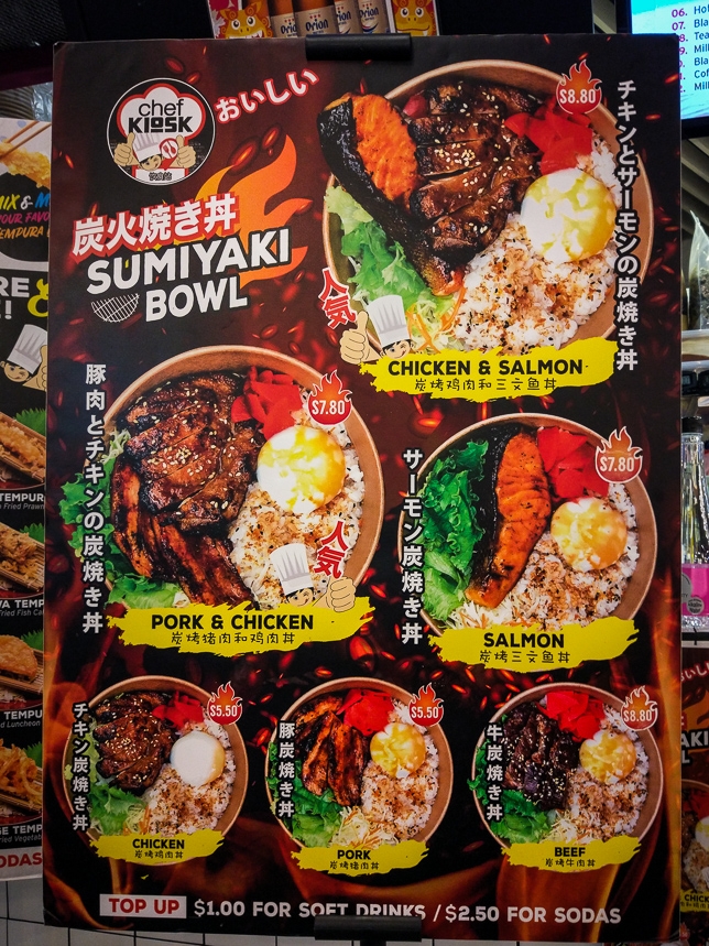 Chef Kiosk offers sumiyaki bowl – traditional Japanese charcoal grilled meat served with Japanese rice, salad, pickles and soft boiled egg.