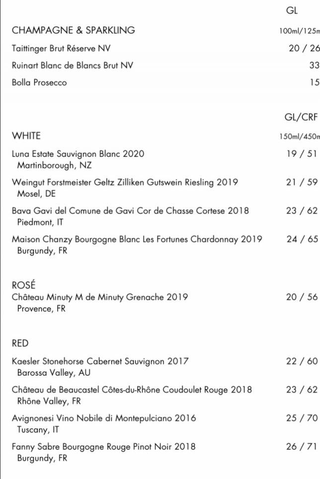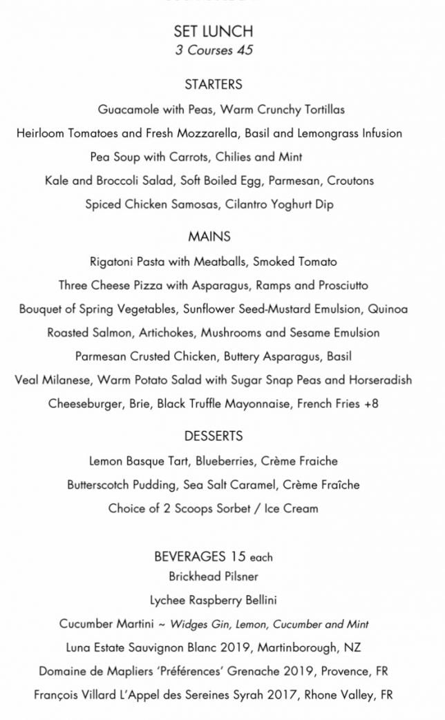 Dempsey Cookhouse Set Lunch Menu and Cocktails
