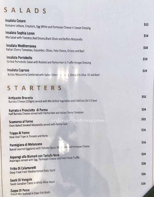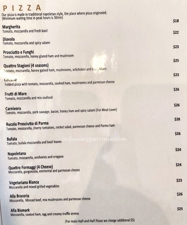 We chose the simplest of pizza – the Margherita pizza which is priced at $19.26 on the La Braceria Delivery delivery menu. With just tomato, mozarella and fresh basil, this is a pizza which we could taste the crust and each of the elements of the pizza. It was very good. We would probably order this for takeaway instead of the pricier pizzas with more cheese or seafood and meat toppings. We think that a simple pizza has less chance of getting spoiled and will be easier to heat up (if necessary) at home.