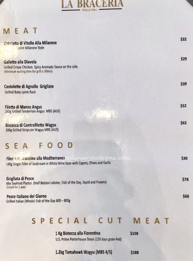 Here are pictures of some sample pages from the La Braceria restaurant menu.