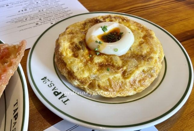 Our next two items were deep-fried padron peppers (above picture) and Spanish tortilla (picture below, $12 each). Padron peppers are a nice snack. Like French fries they can be addictive, eating them one after another is effortless. The tortilla was the best dish of the day and one which we will order at future visits. It was well-prepared with the core of the Spanish omelette still moist. The balance of taste with the egg and onions, potatoes and chorizo was also well maintained.
