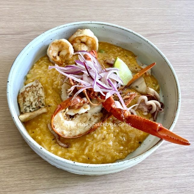 Three rice dishes are featured in the Canchita menu. We picked the Arroz Con Mariscos (Crayfish & Seafood Rice, Peruvian Panca Chilli, Tomatoes, Crab Butter, White Wine ($34). It was presented very attractively. All the seafood items – fish, squid, prawns and crayfish were fresh and perfectly cooked. It was the best dish of the day. It reminded us of seafood paella, except that the rice was wet and flavoured with cheese.