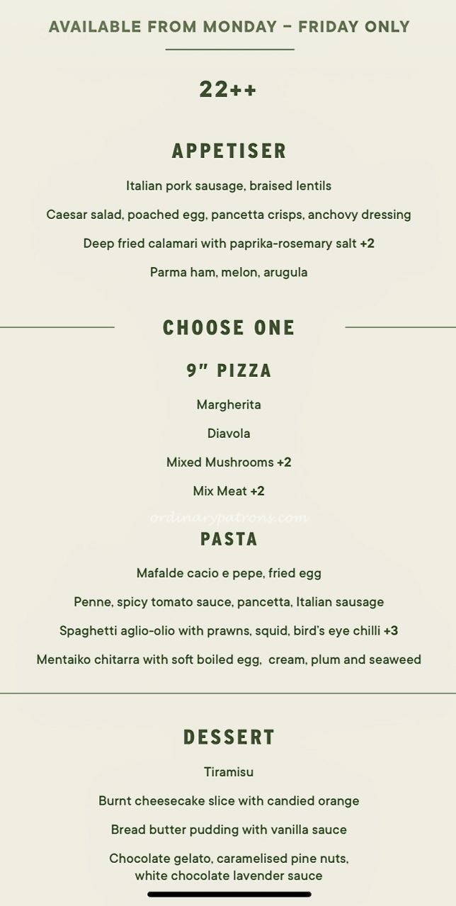 Affordable Italian Food in Singapore : $22++ Set Lunch Menu