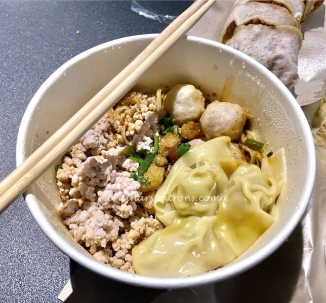 This is a picture of the bak chor mee that we bought takeaway from Famous Eunos. The portion of $5.50 BCM was quite generous. The dumplings are large and juicy. We found the noodles be quite unique. They were thicker than the usual ‘mee kia’ and more springy.
