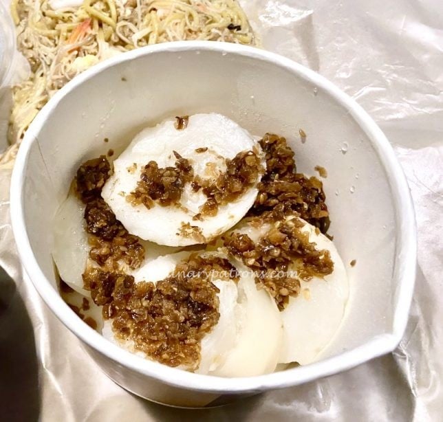 Of all the stalls at Ion Orchard Hawker Street, Jian Bo Tiong Bahru Shui Kueh is the one we are most familiar with, having visited them at Tiong Bahru market many times. The shui kueh or chwee kueh needs no introduction. It is still very good at the Ion Orchard outlet. This is a picture of our takeaway Jian Po chwee kueh ($3.20 for 5 pieces).