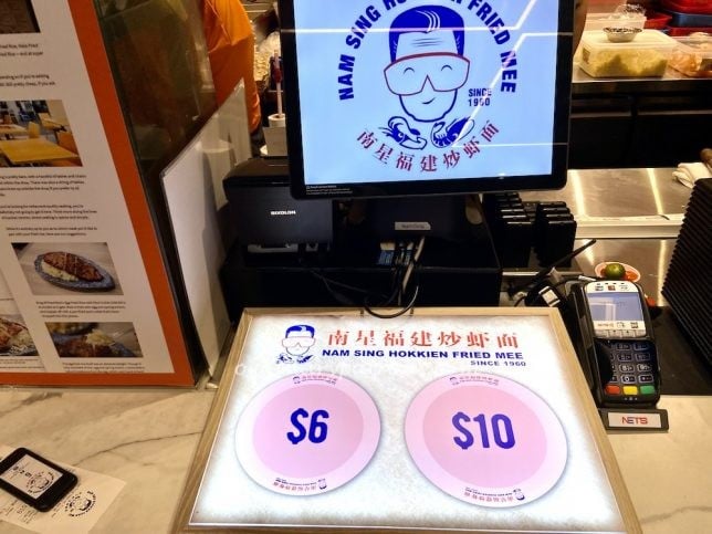 Nam Sing Hokkien Mee is one of the most popular stalls at the Ion Orchard Hawker Street. With a stall at Old Airport Food Centre, it is regarded by some as the best hokkien mee in Singapore. Ordering at Nam Sing is straightforward – just decide to order a $6 or $10 portion. They have a buzzer system so that customers can wait without standing in a queue.