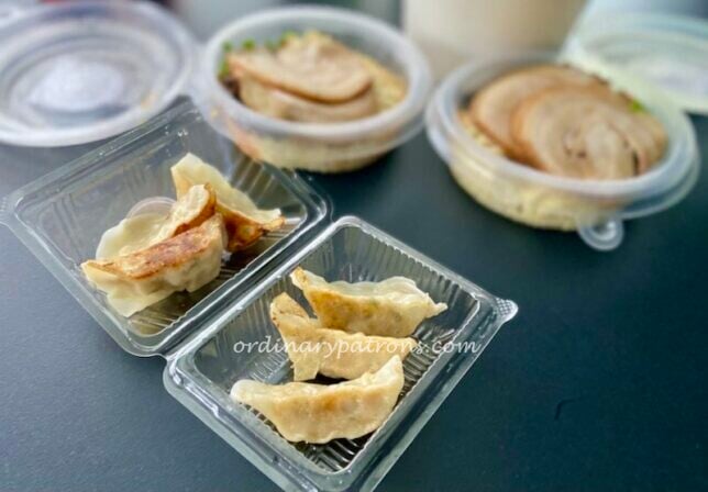 For the side dish we selected the fried gyoza (3 per person). They were nice, still slightly warm and crisp from the delivery.
