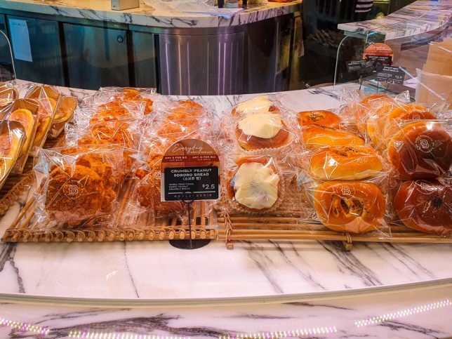 Besides baguette and other French-centric baked goods, there is an assortment of treats, some given a twist for the Asian palate – such as sweet red bean bread, yuzu cream bread and Hong Kong style bread soaked in egg and drizzled with condensed milk.