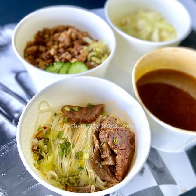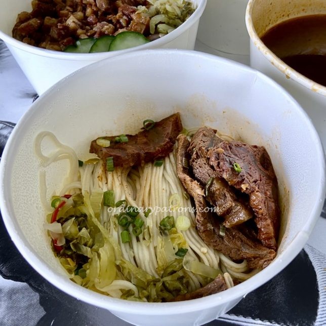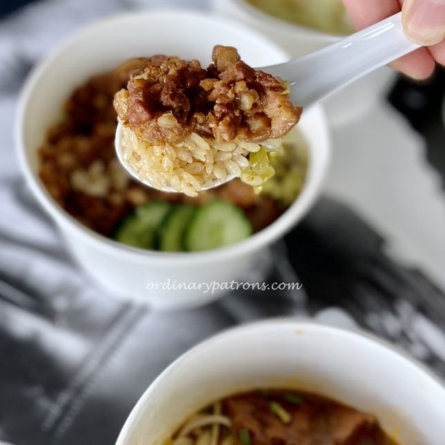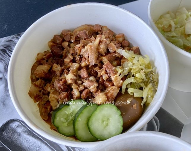 There is quite a wide range of Taiwanese food on the Isshin Machi delivery menu. Here are some screen shots of sample portions. We have provided a link to the full menu at the end of this post. We ordered three dishes: Hakka-style Braised Meat Rice ๅฎขๅฎถๆปท่้ฃฏ ($10.80) Signature Taiwanese Braised Beef Noodle ($14.40) ๅฐ็ฃ่ฅ็็่ๆนฏ้บต and Cabbage with Stir-fried Dry Shrimp ่ฆ็ฑณ็้ซ้บ่ ($9.60)