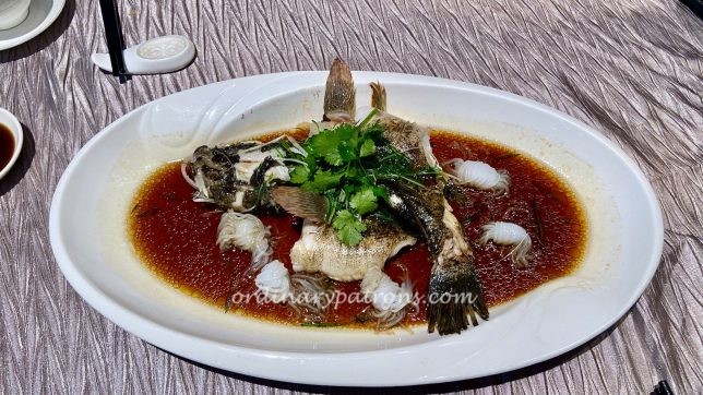 Being at a Teochew restaurant we thought that we should also try a steamed fish dish. We landed on a steamed soon hock. It was certainly a very fresh fish with a clean light flavours. But it was quite a small fish. You can have a better view of it being served in our Youtube video at the end of this post. Another thing about ordering seafood priced by weight is that it is hard to know in advance the price. In this case the price of our fish was $91.
