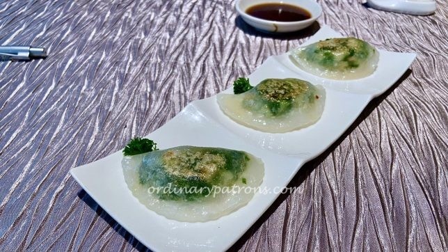 What we thought was very good at Paradise Teochew were the fried dim sum items. The deep-fried scallop and yam ($7.80, picture above) and pan-fried prawn and chives dumpling ($7.50. picture below) had more complex flavours.