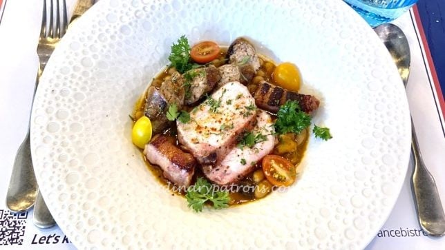 The main course was a tale of two dishes. The seafood risotto (picture above) was excellent. The seafood was fresh and cooked just right. The risotto was nicely favoured and everything combined well. We were not fond of the meat dish (picture below). It was a mixed collection of meat pieces on a bed of baked beans. The pieces of sausage and the two flat pieces in the centre were fine. But there were chunks of what seemed like preserved meat. These were rubbery and very hard to eat.