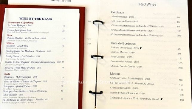Here are pictures of the So France lunch menu and sample pages from the wine list. We decided to try the set lunch which costs $28++ or $32++ respectively for a 2 or 3 course lunch. There is choice of starter or soup for appetiser and a choice of fish or meat for main course. Since there were two of us, we tried each of the options.