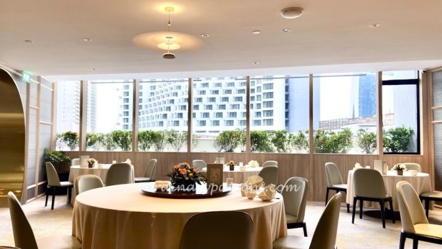 The traditional look of the old Peach Blossoms Chinese restaurant has given way to a more elegant contemporary look. The bird cages that used to to be near the restaurant have moved to the lobby where the birds can now sing freely in a garden environment. You can see pictures of the old look in our previous post on this restaurant.
