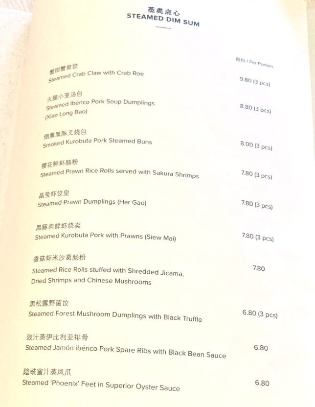 The Peach Blossoms Dim Sum Lunch menu at PARKROYAL COLLECTION Marina Bay is not very extensive. There were just two pages it. But this does not bother us as we tend to order the same items anyway.