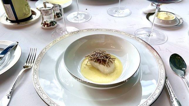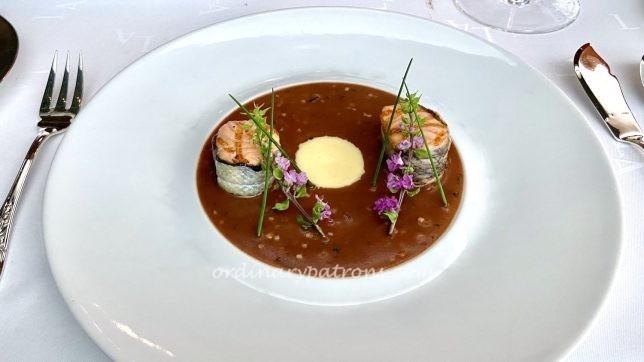 For our first course we selected the Salmon tartare in duo with a special selection of Baeri caviar from Aquitaine (picture above) and the Terrine of Foie gras in a balanced harmony of black truffle (picture below). Both were delicious foods that were best eaten with the bread provided. Thankfully, the foie gras was not too heavy in the liver taste.