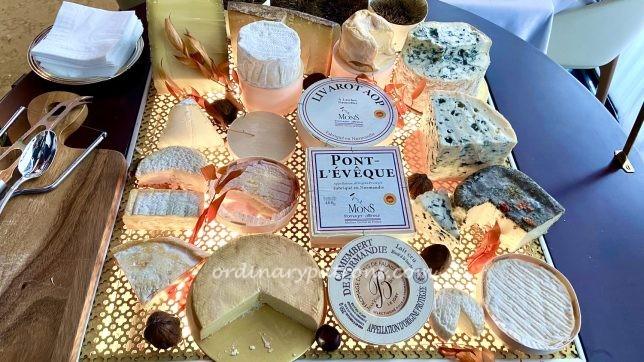 For desserts we chose the cheese selection and the Dark chocolate soufflé with Bora-Bora vanilla ice cream. It is strange that cheese tends to get listed in the dessert section among sweet food that are so different. We were glad that our server offered to serve us the Fine selection of farm house & artisanal french cheeses from Mons separately from the real desserts. Since we were unfamiliar with the types of cheese, we left it to the expert to compile an assortment. We were happy with his recommendation of six types different textures and tastes.
