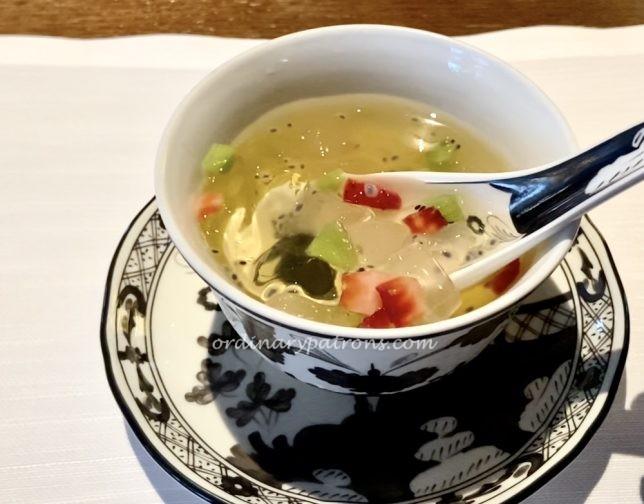 Dessert was Chilled Aloe Vera, Kiwi, Strawberry, Lime Juice, a very simple dessert that brought our Summer Pavilion Singapore lunch to a cool end.