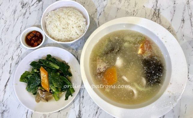 We were less fond of the more expensive fish soup. The slight fishy taste and the very thin slices of fish are the main reasons. I believe the type of fish used was toman fish or snakehead. The set meal comes with rice, a small plate of fried kai lan and a drink.