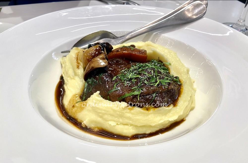 The other main course that we had was the Beef Bourguignon ($38). This was also a very good dish with the beef cooked until very soft in a red wine sauce. It was served on a base of potato puree which was a great companion food with the sauce.