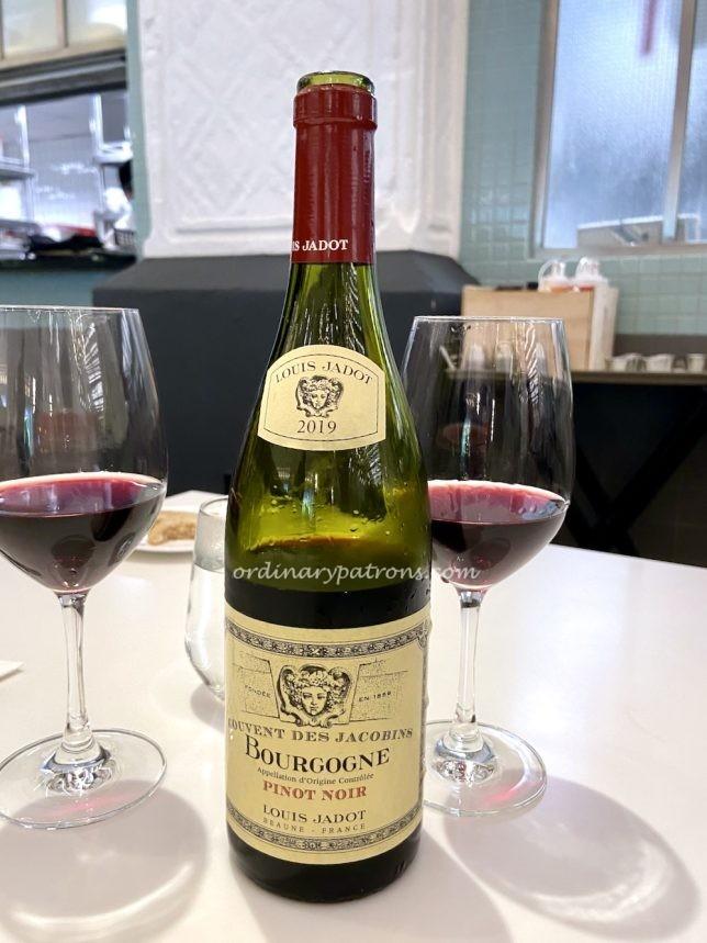 Our choice of wine for lunch at Culina COMO Dempsey was a bottle of Louis Jadot Bourgogne Pinot Noir 2019 ($64.50 + corkage fee of $18). We asked for the entry level red Burgundy to be slightly chilled and it was a pleasing wine to go with our lunch.