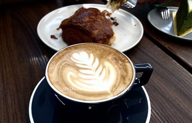 Although I experimented with some filter coffees at PPP Coffee, I also had to have the espresso coffee made with the super coffee machines. The cappuccino was most enjoyable. The snacks that we had with our coffees were a chocolate croissant ($5) and a slice of matcha lemon pound cake ($8). Both good snacks to eat with coffee but not exceptional.