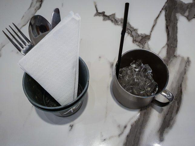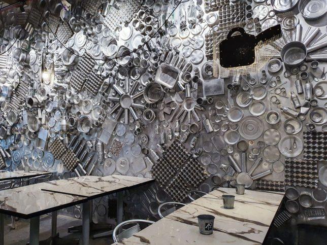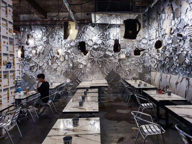 The unique quirky interior that features an old coffee shop metal gate is part of the branding of 49 Seats. Opinion may differ as to its aesthetics, but the wall art of spray-painted tableware and kitchen items is certainly eye-catching.