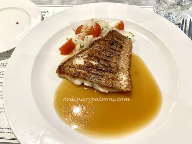 Our choices of starters were the red cabbage salad and the pan-seared foie gras, the latter attracting a $8 surcharge. The red cabbage salad was a plate of shredded cabbage with some slices of orange topped with olive oil dressing and some bits of nuts. It was a disappointing start to the meal.