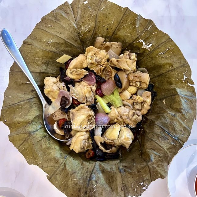 The fried yam pancake and chicken in lotus leaf were dishes we have never tried before. Arriving in a dramatic way was the chicken which was fully wrapped in large lotus leaf and steamed in a large bamboo basket (similar to those used for dim sum, but much larger).