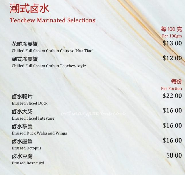 The Yi Qian Private Dining menu is available online so we will just post a few sample pages below. It certainly has a wide selection of Chinese food in the menu. You will find Chinese banquet classics like abalone and shark’s fin as well as affordable dishes that are suitable for casual dining. We decided to try a mix of familiar (braised sliced duck ๅคๆฐด้ธญ, $22) and new to us (pan-fried yam pancake with prawns ($24) and steamed chicken with lotus leaf in basket ็ฌผไป่ทๅถ่ธ้ธก, $22 for half chicken).