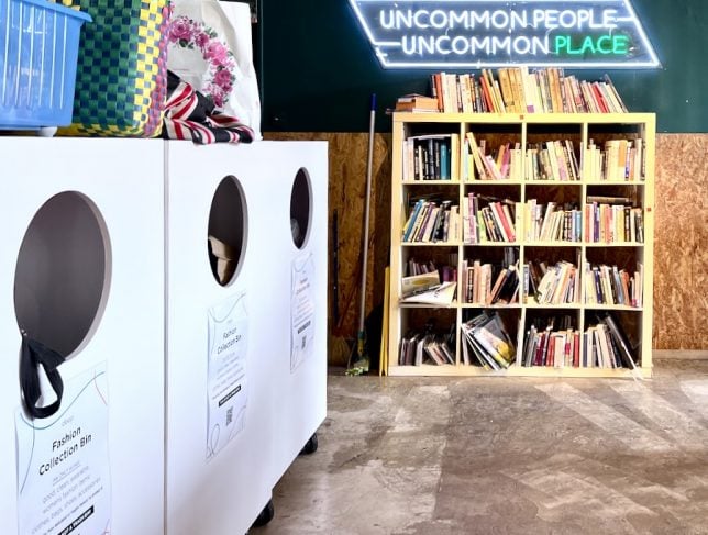 The old school buildings are converted to suit various uses. We saw a fitness centre and a badminton school. Some areas are used for the collection of old books and clothes for up-cycling (resale at low prices). Some parts of the old school look messy and unkempt. But overall it is an interesting place to explore.