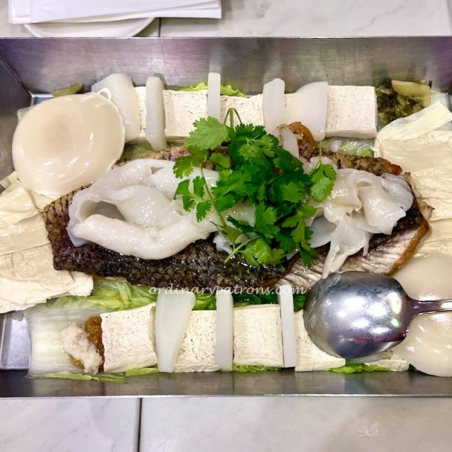 The star attraction at Lao Beijing restaurant seems to be the dish known as “The Mermaid 美人鱼”. Fans of the Walt Disney animated movie may be glad to know that it has nothing to do with the Disney character. It is really a fillet of grilled Australian barramundi served in a collagen broth made using homemade collagen and fish bone soup. Other ingredients such as tofu, white radish, bamboo shoots in the soup complete the dish.