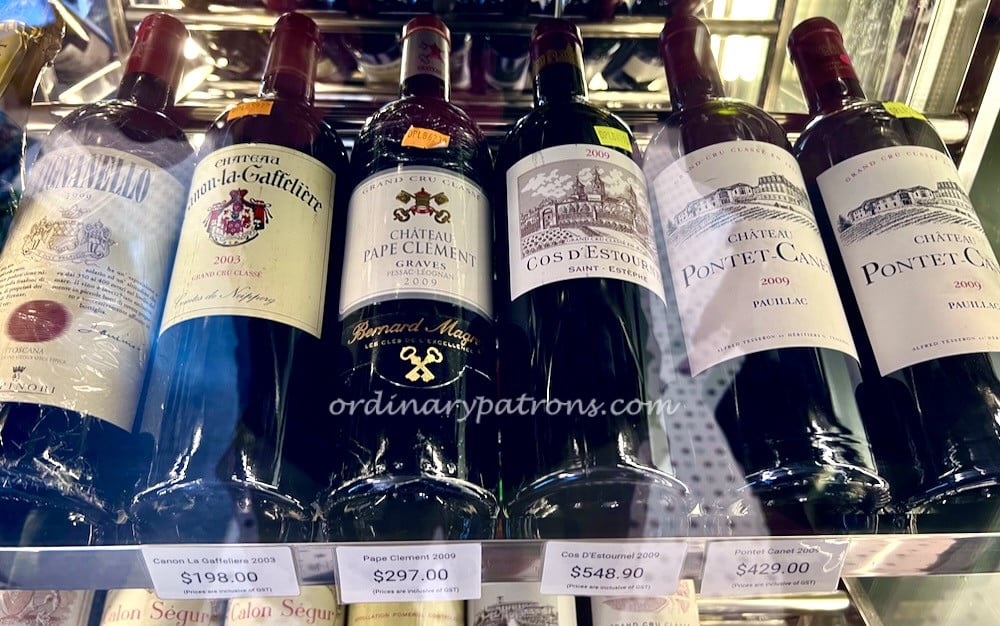 In addition to top Bordeaux wines, including some of the first-growth chรขteaux, there are also some delicious wines from Spain and Italy including some top super Tuscans.